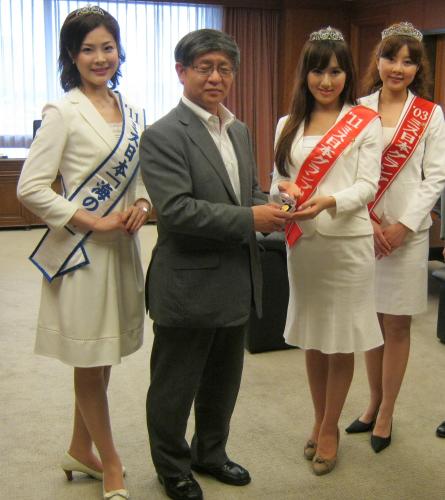 護衛艦はるさめの川上司朗艦長(右)原弘章副長(左)と記念撮影するミス日本97年度グランプリの田村桂子(左から2人目)11年度ミス海の日・樋口彩乃(同3人目)同グランプリ・谷中麻里衣(同4人目)10年度ミス着物・東愛美(同5人目)03年度グランプリ・相沢礼子(同6人目)=防衛省提供 Photo by スポニチ ミス日本 メッセージ手渡し自衛隊員を激励 ギャラリーで見る この記事のフォト 2011年06月21日の画像一覧 もっと見る 2011年06月21日の画像をもっと見る