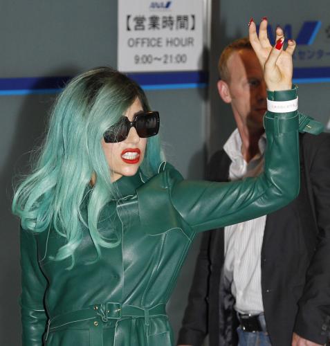 「世界のセレブ番付」で1位になった米国のトップ歌手レディー・ガガ(25)が21日午後3時50分、成田空港着のカナダ航空で来日した。ファッションリーダーとして、全身緑色の奇抜な装いで飛来。ファン約200人から熱烈な歓迎を受け、「日本の安全性を証明してあげる」などとあいさつ。東日本大震災の被災地を慰問するとの情報もあり、来日中の動向が注目される。