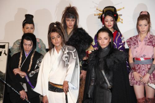 劇団☆新感線「髑髏(どくろ)城の七人」製作発表(前列左から)早乙女太一、小栗旬、森山未來(後列左から)高田聖子、勝地涼、小池栄子、仲里依紗