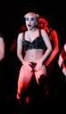 1曲目は「The Edge of Glory」。クモの糸から抜け出すと、来日以来の緑のカツラを脱ぎ、金髪に変身。続いて現れた巨大クモのオブジェは、一部がピアノになっており、弾き語りで2曲目「Born this way」を歌い始めた。胸の谷間を強調したり、ビキニパンツで生脚を披露したりと、出し惜しみしないステージを繰り広げた。