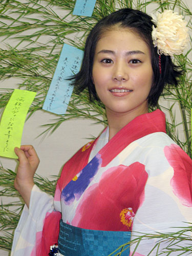 七夕を前に浴衣姿で登場。短冊に「悩殺ボディーになれますように」などと願いを書いて、「(ルパン三世の)峰不二子が理想」と笑顔。07年からピーターパンを演じ、今年で卒業。「まだ実感がわかない」と話した。