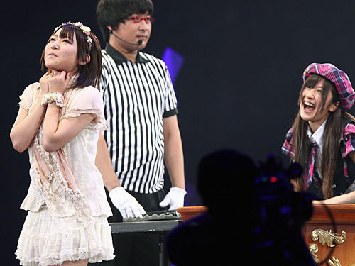 昨年の選抜じゃんけん大会、決勝戦で石田晴香(右)に勝利した内田眞由美
