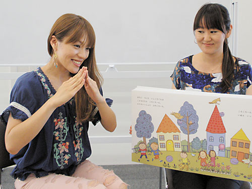 横浜市内で自作の絵本出版記念の読み聞かせイベントを開いた今井絵理子(左)