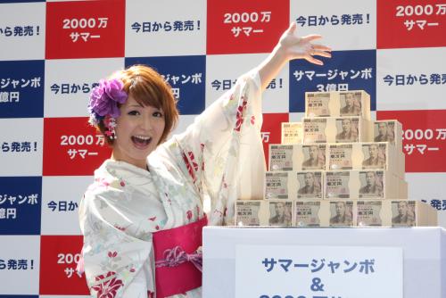 タレントの矢口真里(28)が11日、東京・銀座の西銀座チャンスセンターで行われたサマージャンボ宝くじ/2000万サマー発売開始記念イベントに登場した。