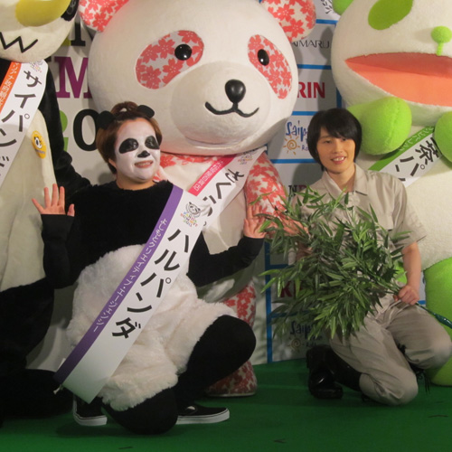 パンダキャラクターが集まり、被災地の動物園訪問などを行う試み。近藤もパンダメークで登場した。小学校3年から3年間サッカーをしていた箕輪は、なでしこジャパンのW杯決勝進出について「女性の活躍する時代。元気をくだされば」とエールを送った。
