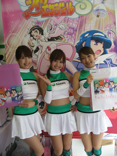 「ツインエンジェル」はパチスロオリジナル作品初のテレビアニメ(tvk、サンテレビなどで放送中)、PSPゲーム、コミックと多メディアで展開。担当者は「アニメで知った人にも楽しんでほしい。スペックも自信あります」とアピールしていた。