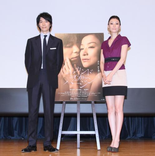 俳優・長谷川博己(34)と女優・田丸麻紀(32)が29日、出演映画「セカンドバージン」(監督黒崎博、9月23日公開)のトークショーを都内で行った。