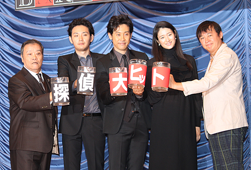 俳優の大泉洋(38)が10日、都内で行われた主演映画「探偵はBARにいる」の初日舞台あいさつに共演の小雪(34)、松田龍平(28)、西田敏行(63)、橋本一監督(43)とともに登場した。