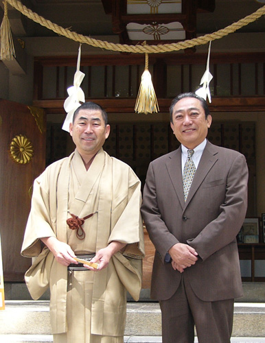 大阪・高津宮で松竹新喜劇の成功祈願をした桂南光(左)と渋谷天外