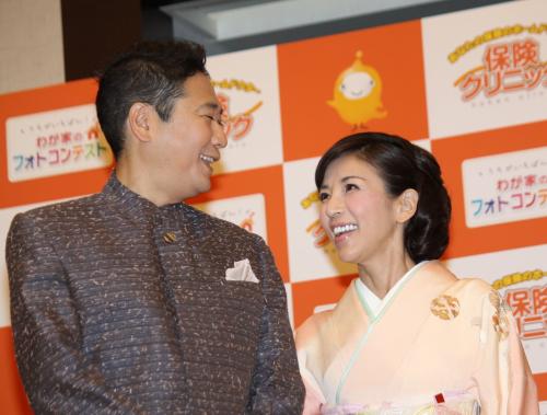 「わが家のフォトコンテスト」表彰式に登場し、見つめ合う川島なお美、鎧塚俊彦氏夫妻