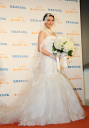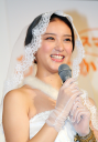 セキスイハイムの新CMキャラクターに決まった女優の武井咲(17)が27日、都内で行われた発表会にCMと同じウェディングドレス姿で登場した。