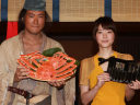 その後、「江」ゆかりの福井県特産の越前ガニと、清盛の舞台の一つとなる広島県の名産「熊野筆」の化粧筆を交換。だが、越前ガニの解禁日は6日のため本物は届かず、松山が手にしたカニは模型で「食べられないの!?」と再び肩を落としていた。