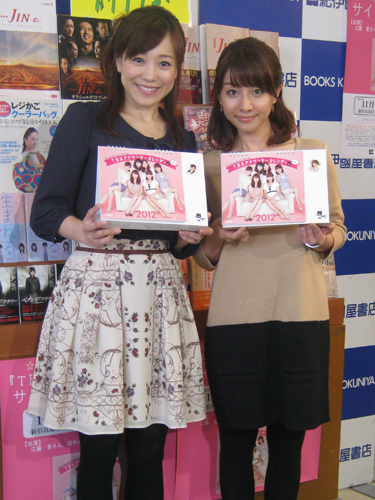 TBSの田中みな実(24)江藤愛(25)両アナウンサーが12日、都内で「TBSアナウンサーカレンダー2012」(ワニブックス)の発売記念サイン&お渡し会を行った。