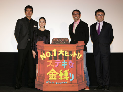 映画「ステキな金縛り」の舞台あいさつに出席した(左から)阿部寛、深津絵里、中井貴一、三谷幸喜監督