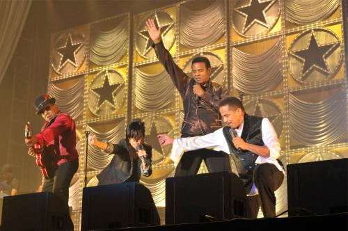 「マイケル・ジャクソン トリビュートライブ」に出演した「ジャクソンズ」とAI。左から、ティト・ジャクソン、AI、ジャッキー・ジャクソン、マーロン・ジャクソン。
