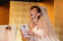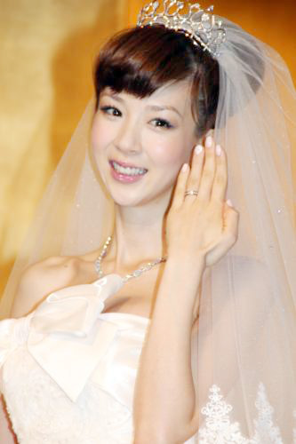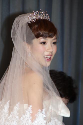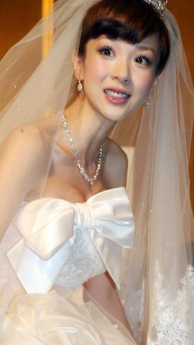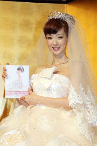 挙式後にウエディングドレス姿で「ほしのあきの My Happy Story」発売記念記者会見に登場したほしのあき