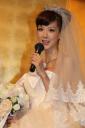 挙式後にウエディングドレス姿で会見に出席したほしのあき
