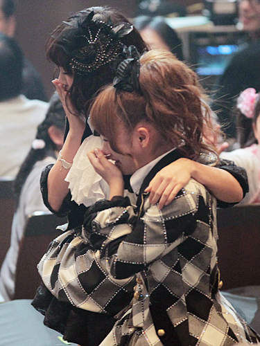 レコード大賞を受賞し泣きながらステージに向かうAKB48の前田敦子(奥)と高橋みなみ
