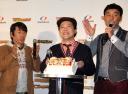 <血栓予防月間に関する記者発表>石田純一(右)が検査で糖尿病の3歩前、メタボの2、3歩前と診断され、なぜかのけぞって大笑いする東尾修氏(左)。中央は東尾理子 Photo by スポニチ 石田純一「糖尿病3歩手前 メタボ手前」に東尾理子お手上げ ギャラリーで見る この記事のフォト 2012年01月20日の画像一覧 もっと見る 2012年01月20日の画像をもっと見る