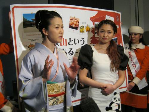 「そろそろ和歌山に行ってみよう」キャンペーンのイベントで、地元和歌山をPRした坂本冬美(左)と岡本玲