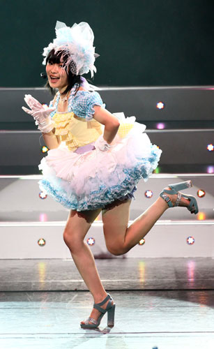 自慢の美脚を強調したミニスカ姿で登場。グループの中では地味なタイプとネガティブな自分をイメージした歌詞を熱唱。歌い終えると「緊張したぁ」とファン約2000人に向かって叫んだ。ヘッドマイクに添えた右手がぶるぶる震えていた。