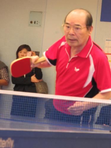 らくご卓球クラブの「新春初打ち会」が23日、都内で行われた。監督を務め、多発性硬化症で05年から闘病を続ける林家こん平(68)も参加、92回のラリーを展開した。