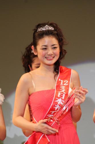「“えっ!?”っていう感じ。夢なのかな、と。ずっと夢見心地です」。発表から数十分たっても、ぱっちりと大きな目をさらに大きく見開き、ミス日本ネイチャーを受賞した片山萌美さん(21)は喜びを語った。