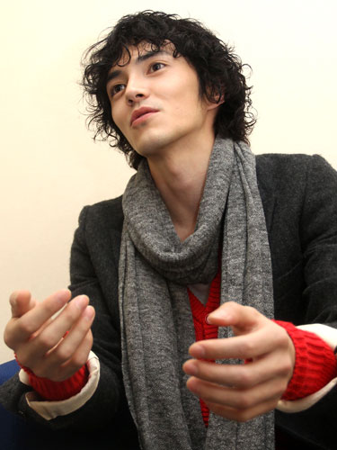 特徴的な大きな目でインタビュアーを見つめながら話す林遣都