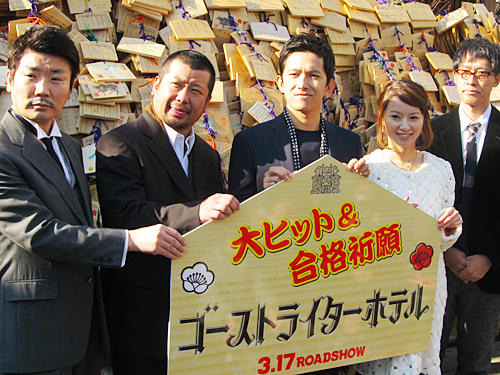 映画「ゴーストライターホテル」(3月17日公開、監督伊東寛晃)に出演した阿部力(29)鈴木亜美(29)らが31日、東京都文京区の湯島天神でヒットを祈願した。