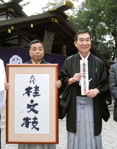 三枝は69歳の誕生日の7月16日に「六代文枝」を襲名。その後、各地で襲名披露の落語会を開く。弟弟子の桂きん枝(61)らと記者会見した三枝は「この年でチャレンジできることがあるのをうれしく思う。精いっぱい頑張りたい」と力強く語った。