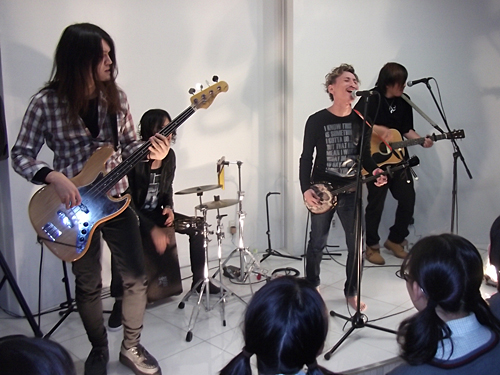 親子で楽しめるロックがコンセプトの4人組。ボーカルのDAIが病気療養中のため、カケラバンクの桜井モトヤをゲストに迎え「人として」「Independent」などを披露し、ファン50人超を魅了した。次回は3月24日に開かれる。
