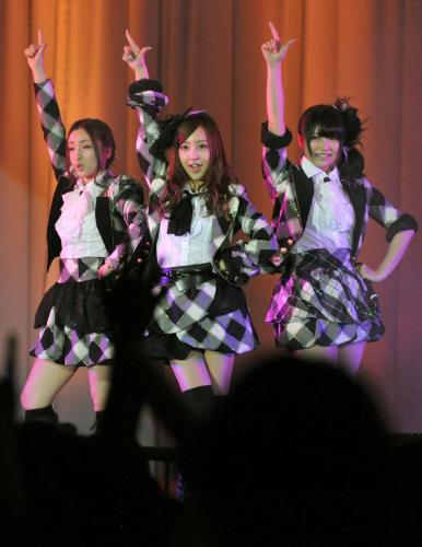 人気アイドルグループAKB48のメンバー3人が26日、中国上海市でミニライブを開いた。
