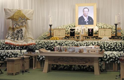 中村吉右衛門(67)や松本幸四郎(69)ら歌舞伎俳優やファン約500人が参列。雀右衛門さんの名前にちなみ、スズメが羽を広げて旅立っていくことをイメージしたという祭壇の中央には、2004年に文化勲章を受章した際の柔和な表情の遺影が。