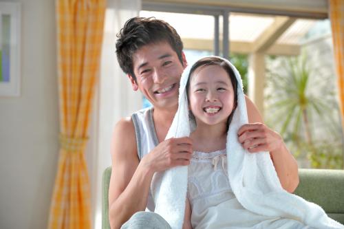 繊維の粗いタオルを痛がる娘(本田)を見て、子供の肌の敏感さを知ったイクメンお父さん(佐藤)。ドラッグストアで「ハミング Neo」の「肌ケア仕上げ」というキーワードに目を留め、早速それを使ったタオルで娘を包む。反応が気になるところだが、娘は「気持ちいい」と大喜び。パパもホッとして、ラストは親子で「肌ケア仕上げ」されたタオルに包まれる。
