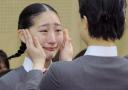 午前10時すぎ、15都府県から集まった15~18歳の新入生がグレーの制服に身を包み、男役は髪をリーゼントに、娘役は後ろで三つ編みにして講堂に登場。入学後2年間、バレエや日本舞踊、声楽のレッスンを受け、歌劇団への入団を目指す。