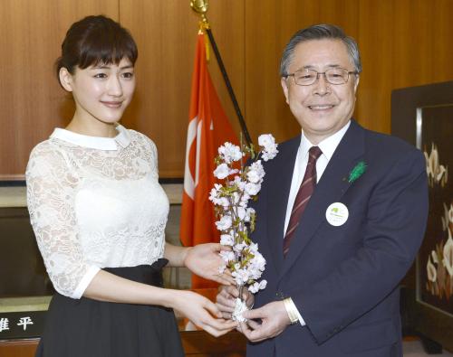 綾瀬は17日から福島県会津地方を回り、18日は佐藤雄平知事を表敬訪問。知事は「立派に役を果たしてください」と期待を込めた。