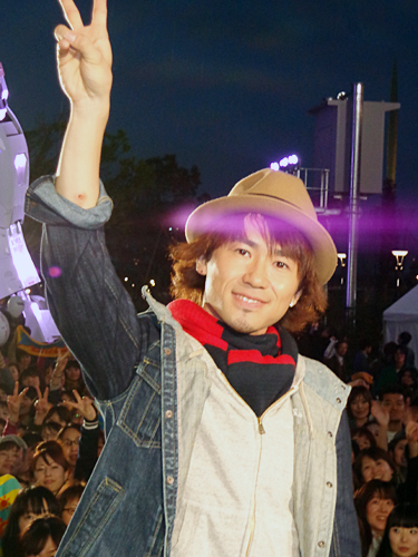 横には巨大なガンダム像。「まさか、このそばで歌うような機会があるとは思わなかった」と笑いながら、新アルバム「風歌キャラバン」の中の新曲「愛してた」など3曲を歌った。