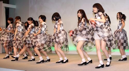 女性グループ「乃木坂46」が20日、都内で新スマートフォン「HTC J」のCM発表会に登場した。