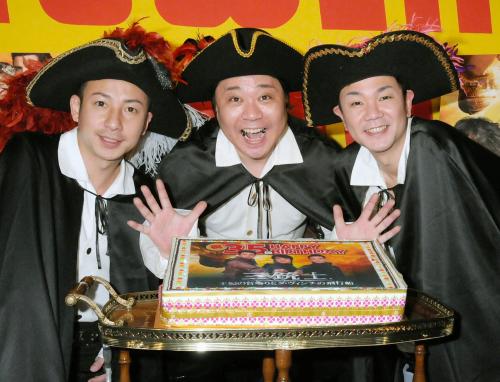 「三銃士 王妃の首飾りとダ・ヴィンチの飛行船」のブルーレイ&DVD発売記念イベントが東京都内で開かれ、お笑い界の“三銃士”こと「我が家」が駆け付けた。