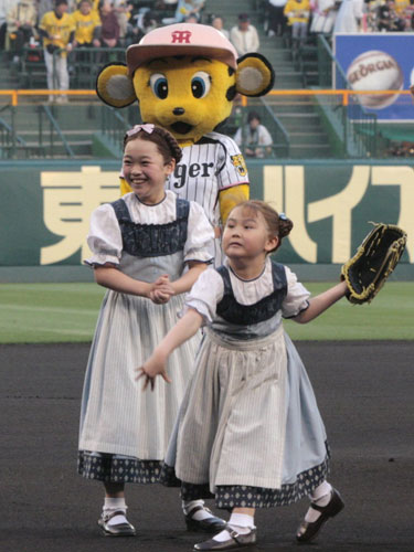 昨年9月から大阪四季劇場で上演中のミュージカル「サウンド・オブ・ミュージック」の出演キャスト3人が24日、甲子園球場での阪神―広島戦の始球式に臨んだ。