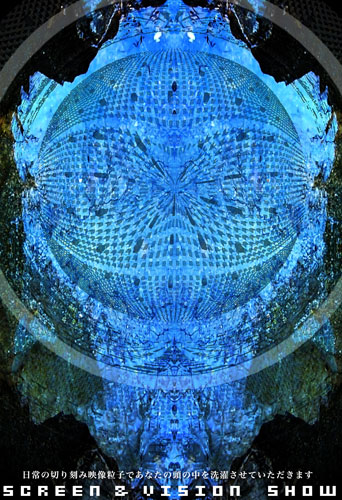 「音」と「立体スクリーン」と「映像」のライブで、プロジェクター(幻燈)のデジタル動画を複数の立体スクリーンに映し出しながら、独特の世界をかもしだす。サブタイトルは「日常の切り刻み映像の粒子と音であなたの頭の中を洗濯させていただきます」。