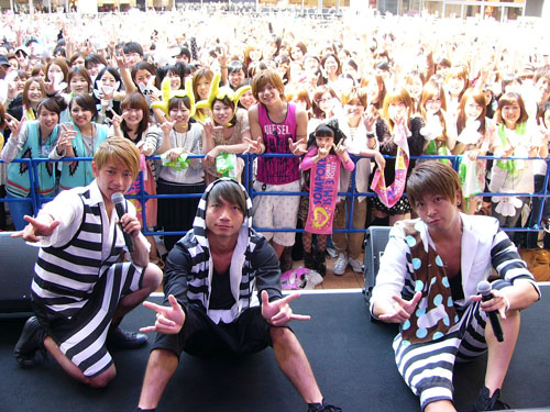 3人組音楽グループのソナーポケットが6日、大阪・阿倍野のキューズモールで、最新シングル「月火水木金土日。~君に贈る歌~」発売を記念したミニライブと握手会を開催した。