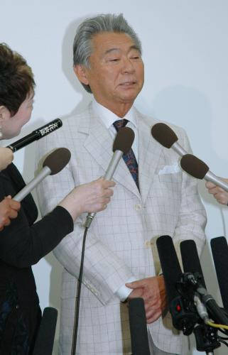 記者会見で亡くなった妻靖子さんへの思いを語るみのもんた