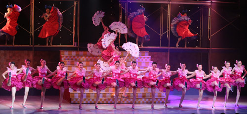 歌手の中川晃教(29)演じる創業家一族の林弘高が、日本初の本格レビュー開催に向けて情熱を注ぐ物語。NMB48とともに、脚線美もあらわに息の合ったダンスを見せた女性お笑いコンビ「アジアン」の隅田美保(36)は「夢をかなえていただきました」と感激の面持ちだった。7月1日千秋楽。