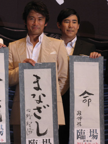 「臨場 劇場版」の初日舞台あいさつに出席した内野聖陽(左)と高嶋政伸