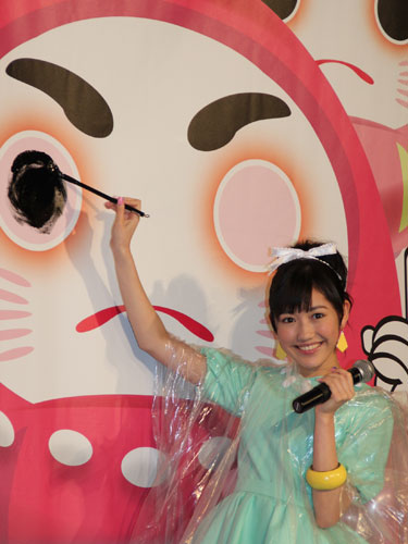 今年の選抜総選挙は2位で「次は1位しかない」と、1位の大島優子(23)に挑戦状。少し気が早いが来年の1位を祈願して、巨大ボードに描かれただるまに目を入れた。ボードは東京・渋谷のセンター街に26日から1年間掲示。「“センター”街で縁起がいい」と笑顔で話した。