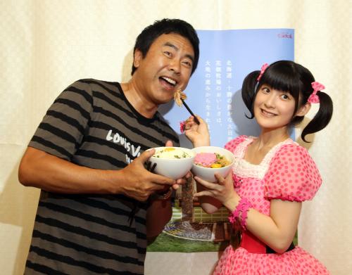 嗣永は花畑牧場社長でタレントの田中義剛(54)の「丼といえば男の食べ物というイメージが強い。女性は店に入るのさえためらうというイメージを払しょくしたい」に応えて登場。「見た目がラブリー。そぼろを使ったももち色(ピンク)のハートが金メダル級」と自画自賛しながら自身プロデュースの「ももち丼」を披露。1日50食限定で提供されるももち丼について「50食?多くない?売れ残ったらどうするの」と戸惑う田中に、「その時は許してにゃん」と流行語大賞を狙っているというももち独特のキャラ全開で答えた。