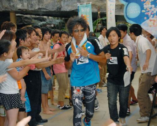 フラガールが出迎え…間寛平“被災地マラソン”ゴール