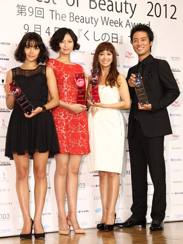 光り輝く才能を持った人に贈られる「The Best of Beauty 2012」授賞式が3日、都内で行われ、草刈麻有(19)、榮倉奈々(24)、優香(32)、桐谷健太(32)が出席した。