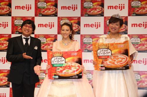 お笑いコンビ「南海キャンディーズ」山里亮太(35)、山崎静代(33)が11日、東京・品川で行われた「明治こだわりピッツェリア」発売記念イベントに登場した。